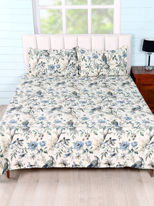 Bedsheets in Blue/White colour made with Cotton Material , Bedding - 3 Pcs Set