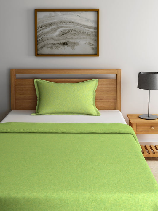 Set of 2 Solid Pattern Green Color Cotton Single Bedcover Set, 1 Single Bedcover, with 1 Pillow Cover