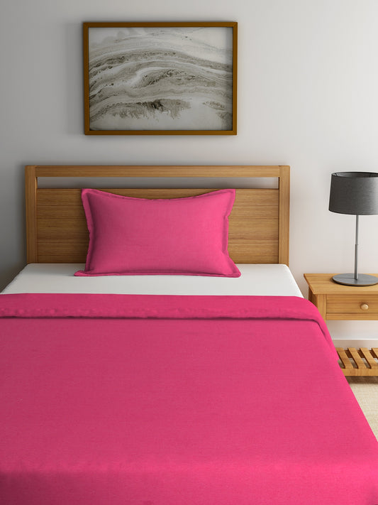 Set of 2 Solid Pattern Fuchsia Color Cotton Single Bedcover Set, 1 Single Bedcover, with 1 Pillow Cover