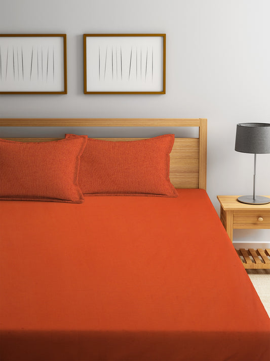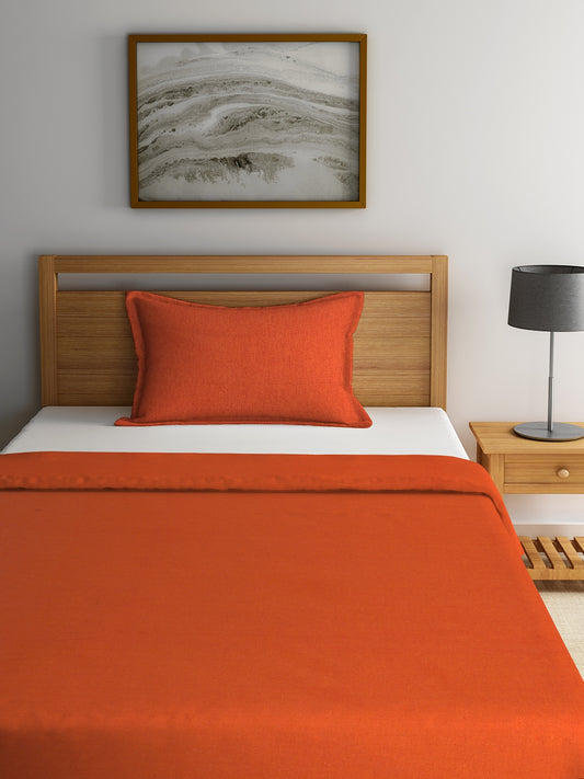 Set of 2 Solid Pattern Rust Color Cotton Single Bedcover Set, 1 Single Bedcover, with 1 Pillow Cover