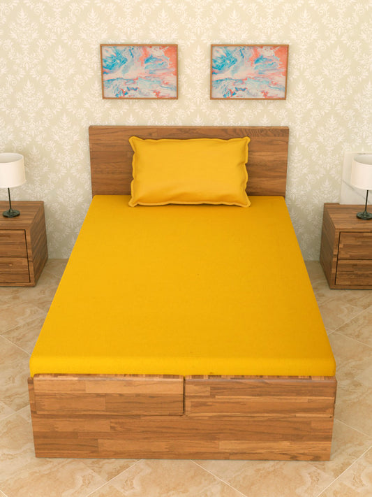 Set of 2 Solid Yellow Color Cotton Single Bedcover Set, 1 Single Bedcover, with 1 Pillow Cover