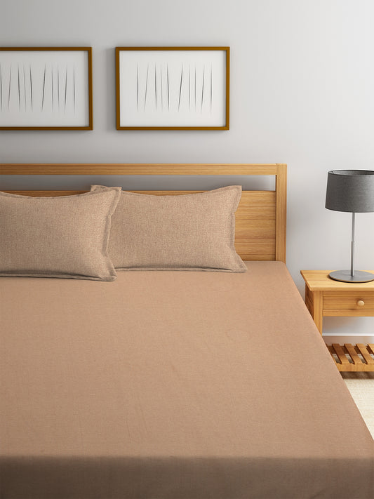 Set of Beige Color Solid Pattern Cotton Double Bedcover Set, 1 Double Bedcover, with 2 Pillow Cover