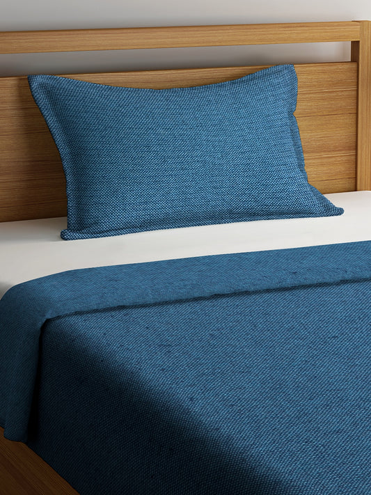 Set of 2 Solid Pattern Blue Color Cotton Single Bedcover Set, 1 Single Bedcover, with 1 Pillow Cover