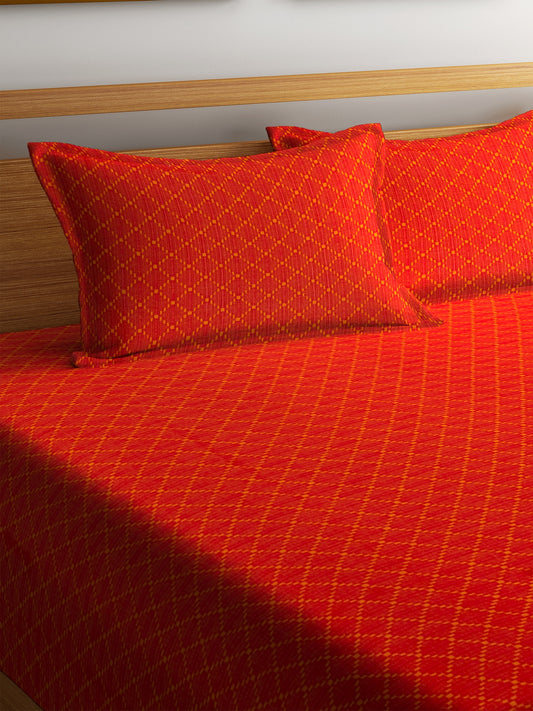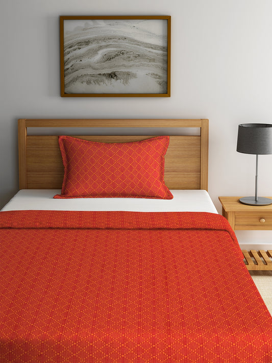 Set of 2 Self Check Design Premium Cotton Rust Color Single Bedcover Set, 1 Single Bedcover, with 1 Pillow Cover