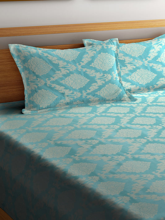 Set of 3 Premium Damask Design Polycotton Double Bedcover Set, 1 Double Bedcover, with 2 Pillow Cover
