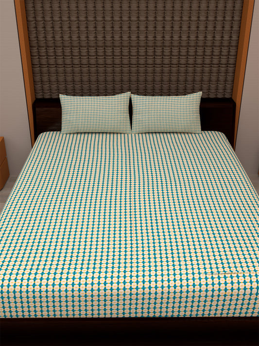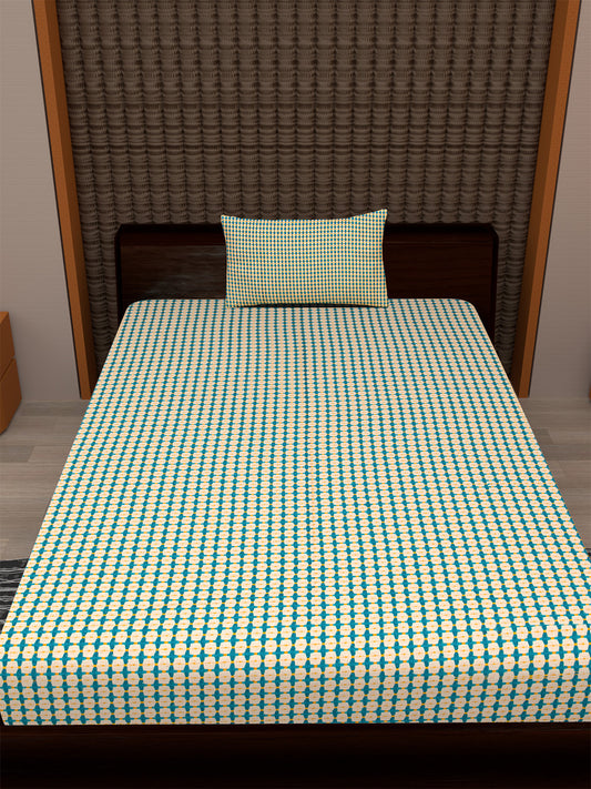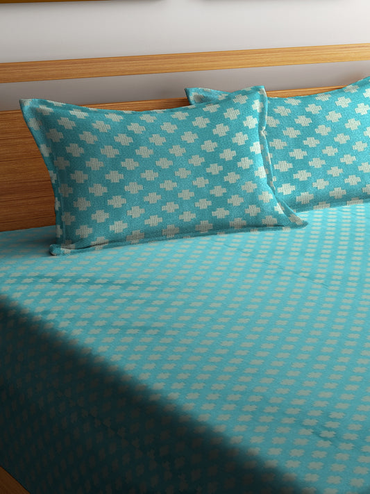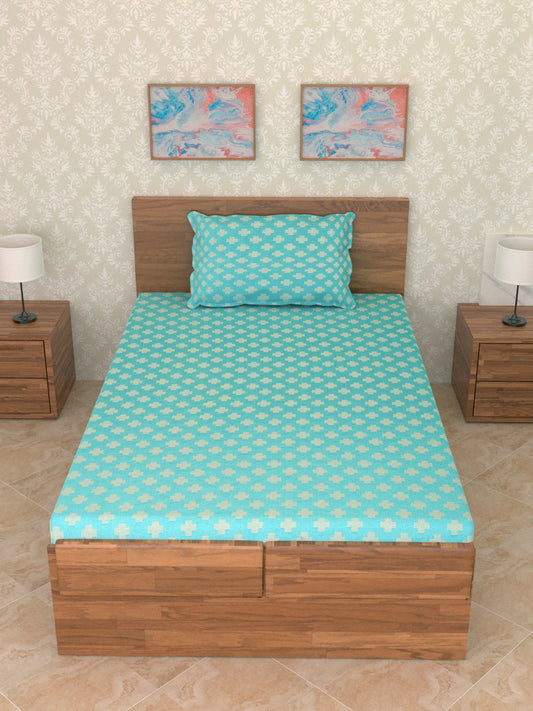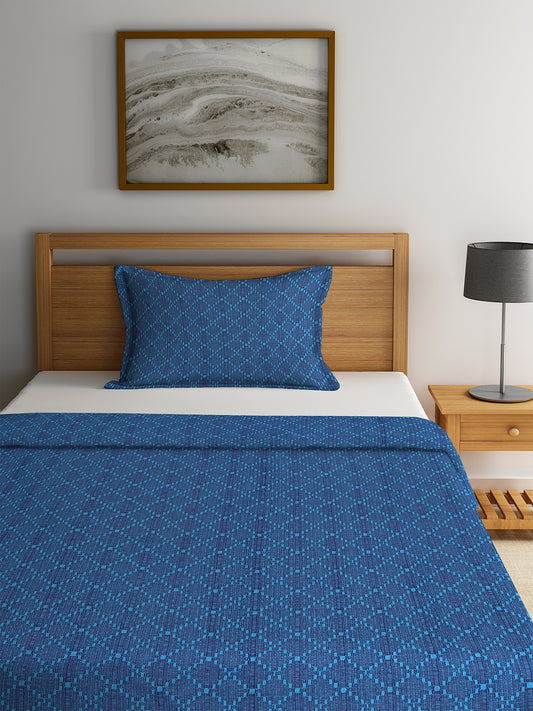 Set of 2 Self Check Design Premium Cotton Blue Color Single Bedcover Set, 1 Single Bedcover, with 1 Pillow Cover