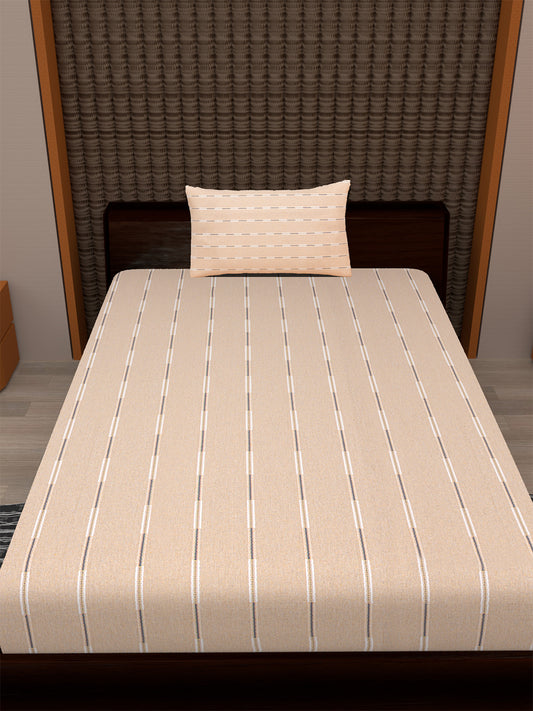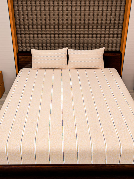 Set of 3 Premium Cotton Stripe Design Mix n Match Pattern Beige Color Double Bedcover Set, 1 Bedcover, with 2 Pillow Cover