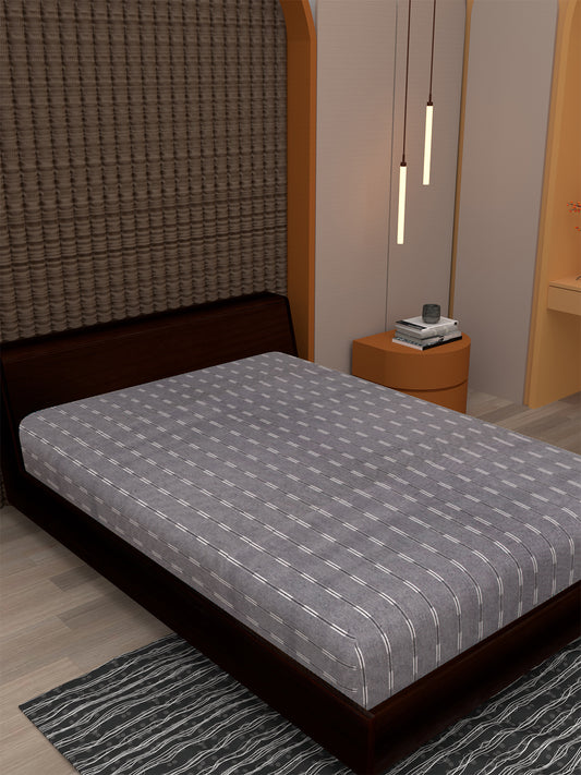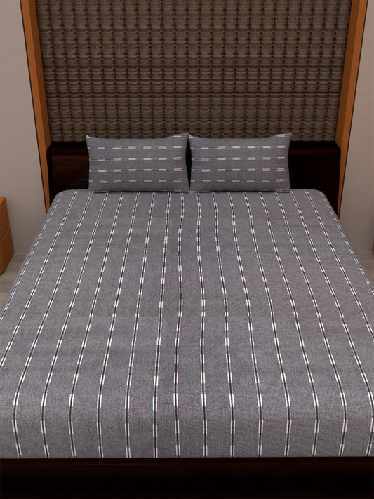 Set of 3 Premium Cotton Stripe Design Mix n Match Pattern Grey Color Double Bedcover Set, 1 Bedcover, with 2 Pillow Cover