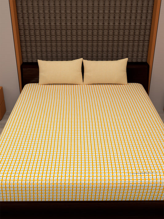 Set of 3 Yellow Color Solid Pattern Cotton Double Bedcover Set, 1 Double Bedcover, with 2 Pillow Cover