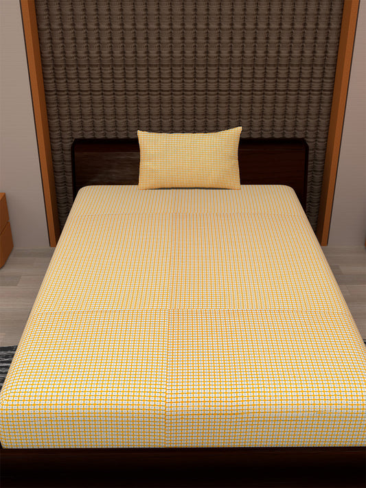 Set of 2 Solid Yellow Color Cotton Single Bedcover Set, 1 Single Bedcover, with 1 Pillow Cover