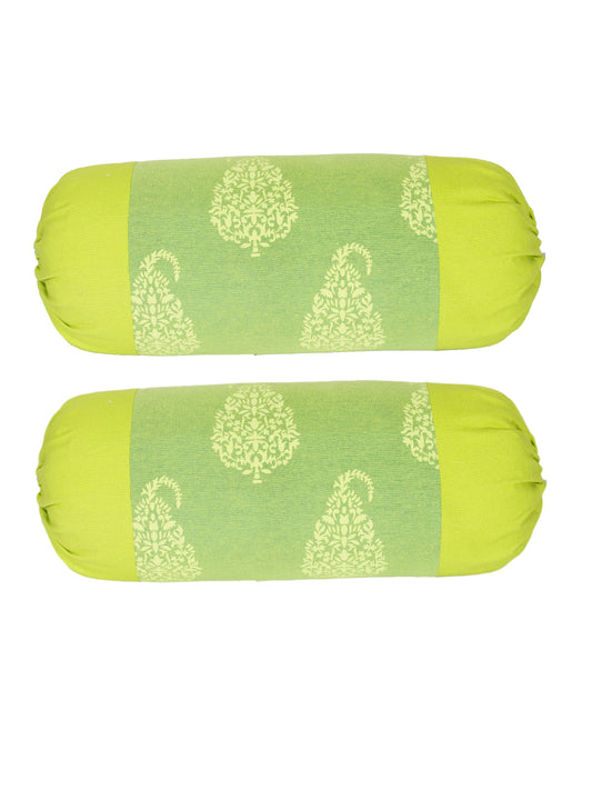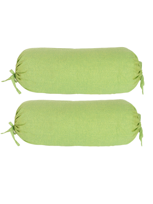 Mix n Match Premium Print Cotton Solid Design Green Color Bolster Cover, Pack of 2