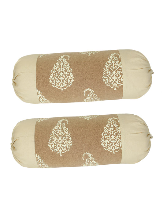 Mix n Match Premium Print Cotton Solid Design Beige Color Bolster Cover, Pack of 2