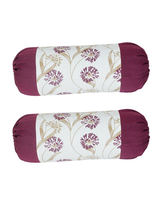 Mix n Match Cotton Floral Design Purple Color Bolster Cover, Pack of 2