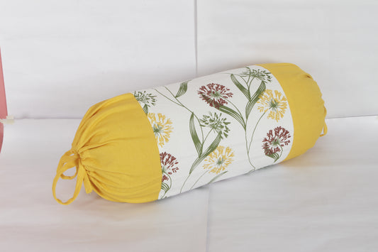 Mix n Match Cotton Floral Design Yellow Color Bolster Cover, Pack of 2