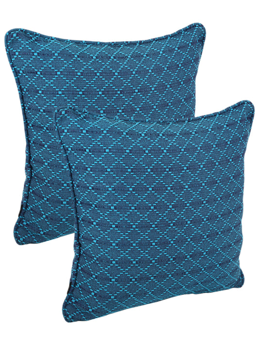 Set of 2 Premium Geometric Design Turquoise Color Cushion Cover, 5 pc Cushion Cover