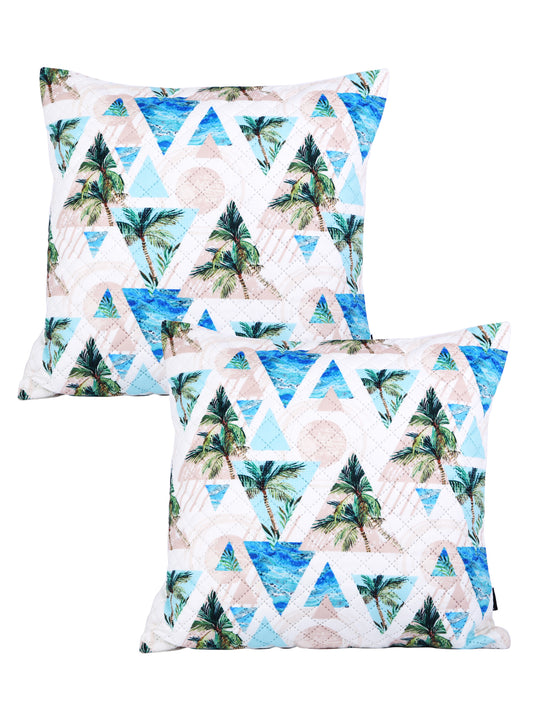 Soumya White & Green 2 Pcs Quirky Square Cushion Covers