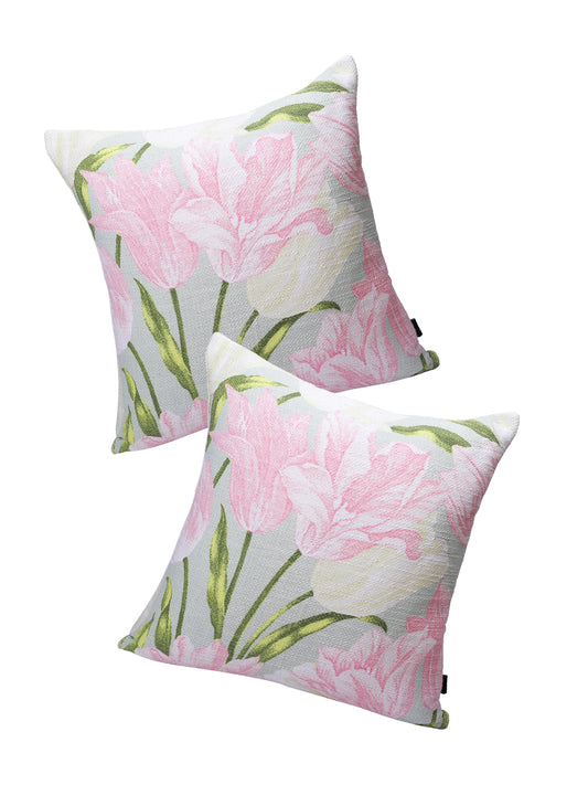 Soumya Grey & Pink 2 Pcs Floral Square Cushion Covers
