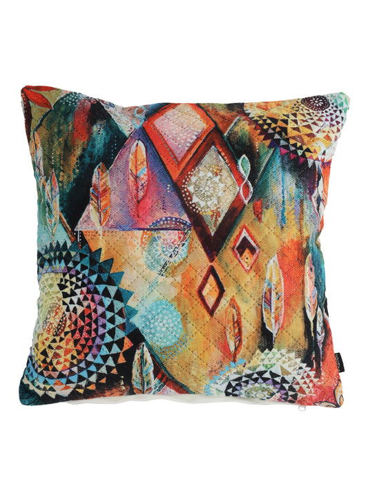 Soumya Orange & Green 2 Pieces Floral Printed Quilted Square Velvet Cushion Covers