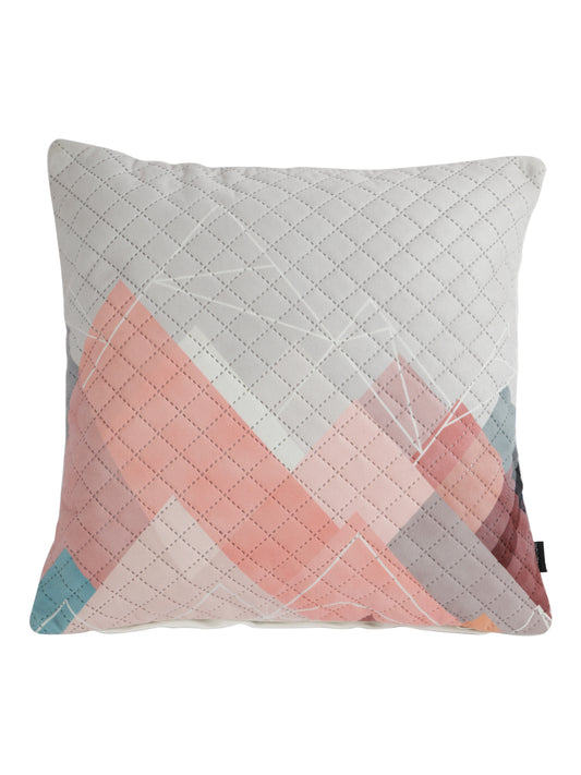 Soumya Peach-Coloured & White 2 Pieces Printed Quilted Square Velvet Cushion Covers