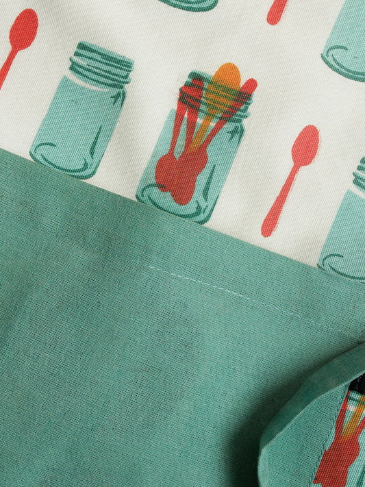 Cotton Printed Kitchen Apron with Front Pocket Green Color Apron, 1 pcs Apron