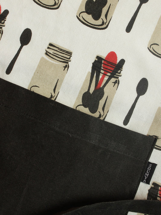 Cotton Printed Kitchen Apron with Front Pocket Black Color Apron, 1 pcs Apron