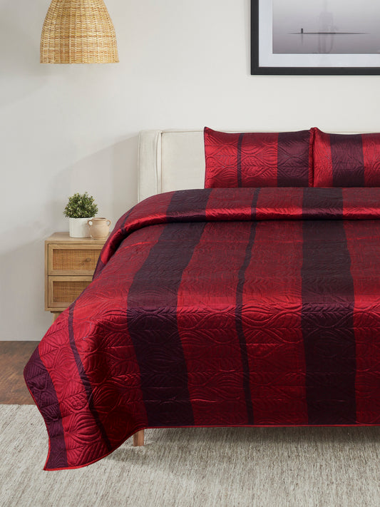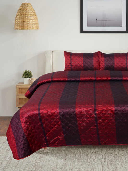 Premium Maroon Color Printed Reversible Quilted Double King Bed Cover Set - 3Pcs