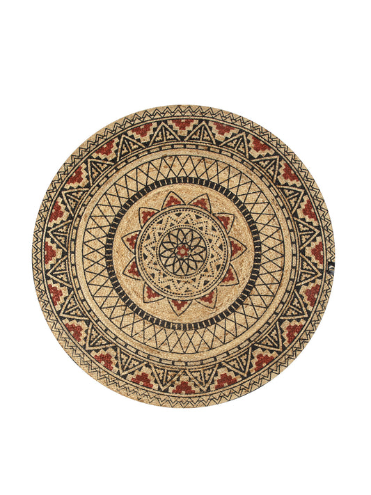 Natural Jute Braided Washable Printed Round Mat Maroon and Black Color for Door and Bed Side, 1 Pc. Mat