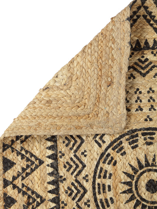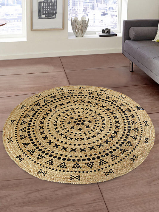 Natural Jute Braided Washable Printed Round Mat Black and Beige Color for Door and Bed Side, 1 Pc. Mat