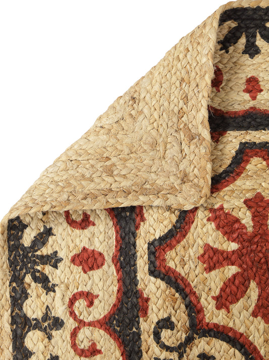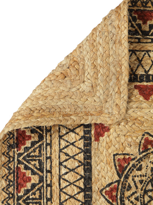 Natural Jute Braided Washable Printed Mat Maroon and Black Color for Door and Bed Side, 1 Pc. Mat