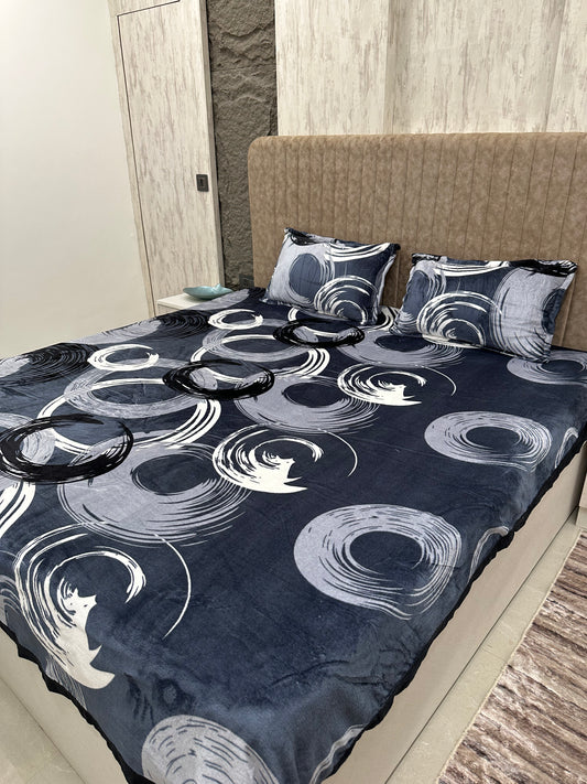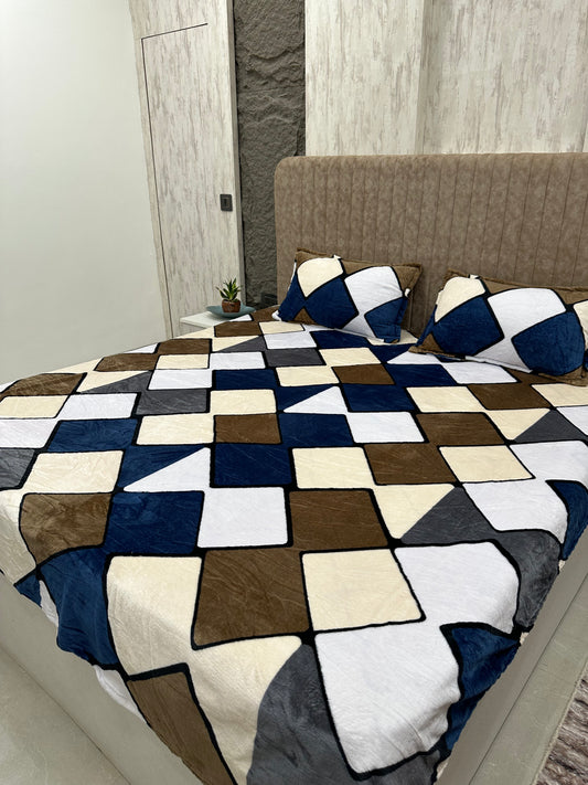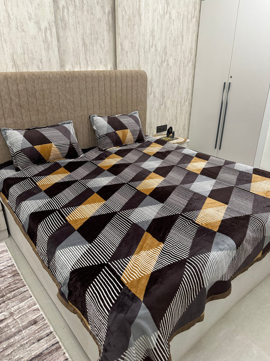 Soumya Geometrical Warm Double Bedsheet with 2 pillow covers