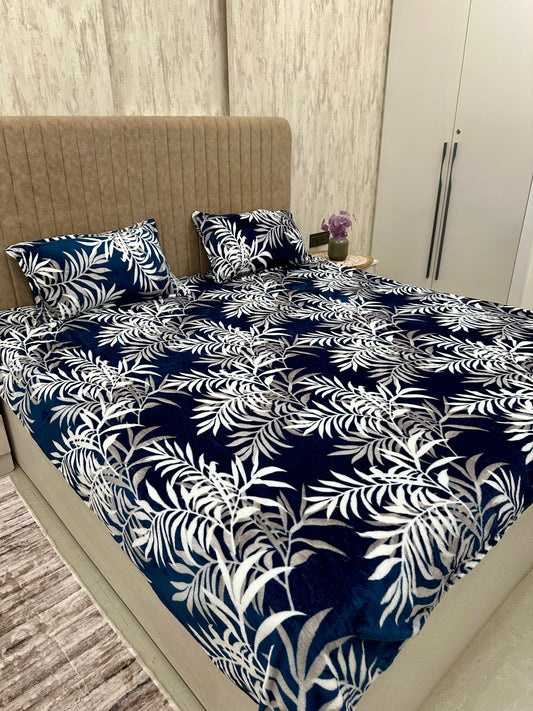 Soumya Blue Warm Double Bedsheet with 2 pillow covers