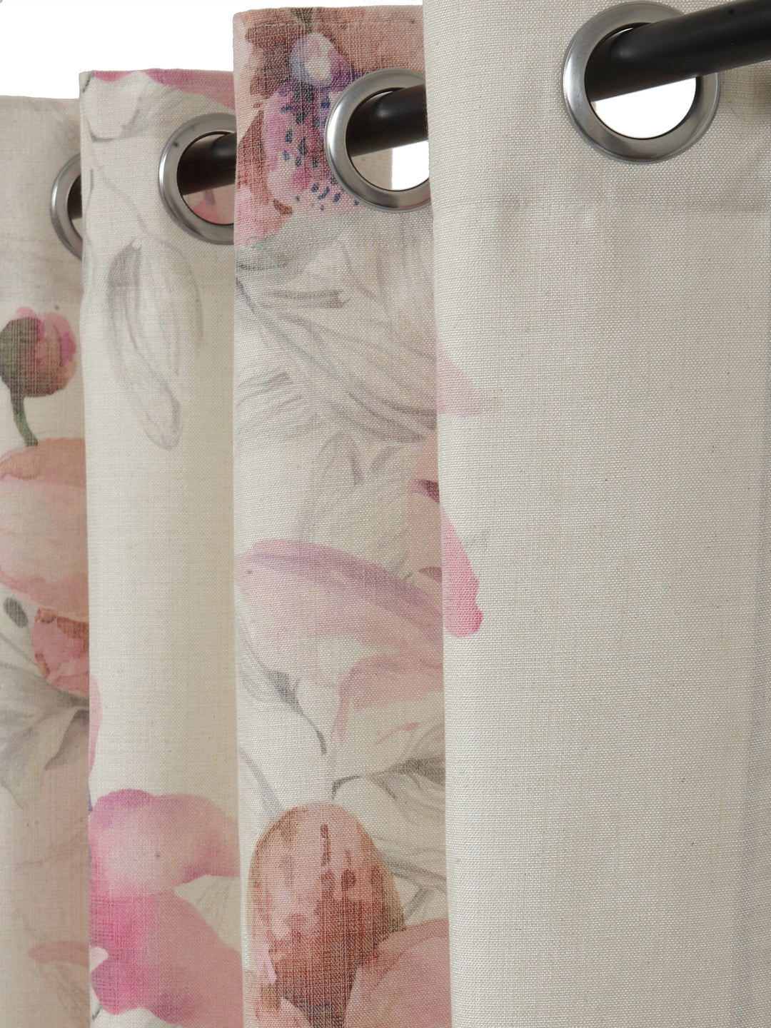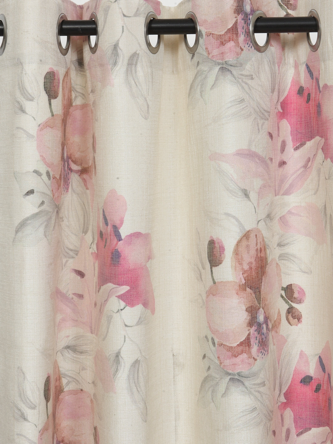 Soumya Floral Jute Digital Printed Premium Lilly Pink Eyelet Curtain, Pack of 1