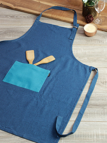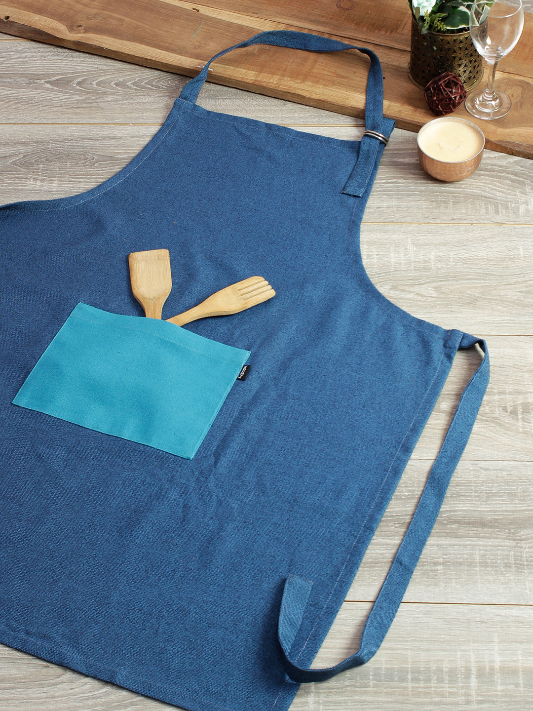 Premium Cotton Solid Kitchen Apron with Front Pocket Blue Color Apron, 1 pcs Apron