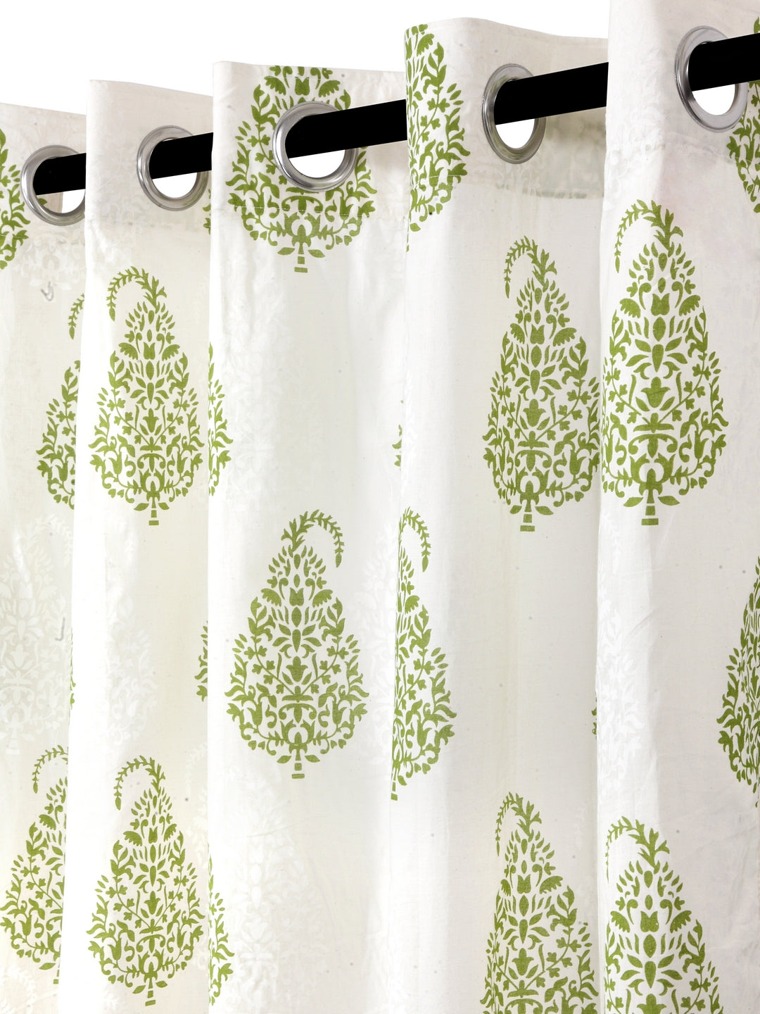 Soumya 100 % Cotton Voile Fabric Printed Light Green Eyelet Curtain, Pack of 1