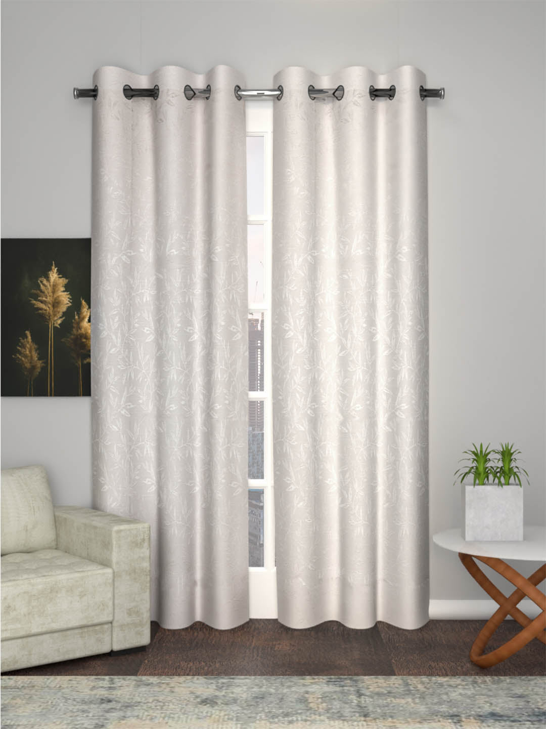 Jacquard woven Curtain in White color made with  Polycotton Material , Curtain - 1 pc